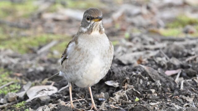 最初の観察地に入ると、ツグミがお出迎え。こちらをじっと見ています。脅かさないようにそっと進むと、奥...