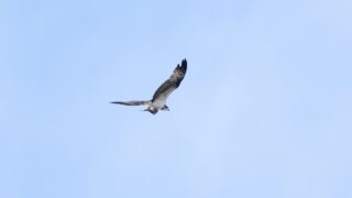観察時間に雨がざあっと降ってきました。機材をレインカバーで覆い、傘をさすだけで観察と撮影がしにくくなりますが、近年の機材は防滴をうたっておきながら、すぐに水が入ったり故障したりするので、信用できません。さらに、林は暗いし、雨粒が葉を揺らすので、もう探索は困難です。おまけに、雨なら蚊も活動できないだろうと思いきや、傘の中に入ってきます。そんな困難な状況ですが、探索をしていると、枝葉の向こうを中型の鳥が飛びました。間欠羽ばたきでふわっと飛ぶシルエットで、カケスだと見当がつきます。はたしてゲーゲーという声が聞こえました。渡ってきたばかりのカケスは警戒心が強く、姿を見せてくれません。雨の中、かろうじてピンボケ写真を撮りました。池に出るとハクセキレイが、フライングキャッチにいそしんでいました。