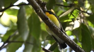 どんより冷んやりの朝、風もありましたが、いきなりジョウビタキの声。冷たい空気によく合う鳴き声です。植え込みをこっそり動く姿を遠くから捉えると、メスタイプでした。同時に後方でも鳴いている個体がいました。出てくるのをじっと待ちましたが、来ません。その後、地上に降りて何かを捕らえ、樹上に上がった小鳥がいたのでジョウビタキだと思い込みましたが、双眼鏡で確認するとキビタキ。なぜか金網にとまるオス個体も。ジョウビタキが出てこないので見切りをつけて移動。エナガとカラ類の混群を見ていると、エナガたちが「タカだー!」と教えてくれたので見上げると中型のタカが。ツミだと思い込みましたが、写真を撮って確認してみるとハイタカでした。寒気が冬鳥たちを連れてきます。