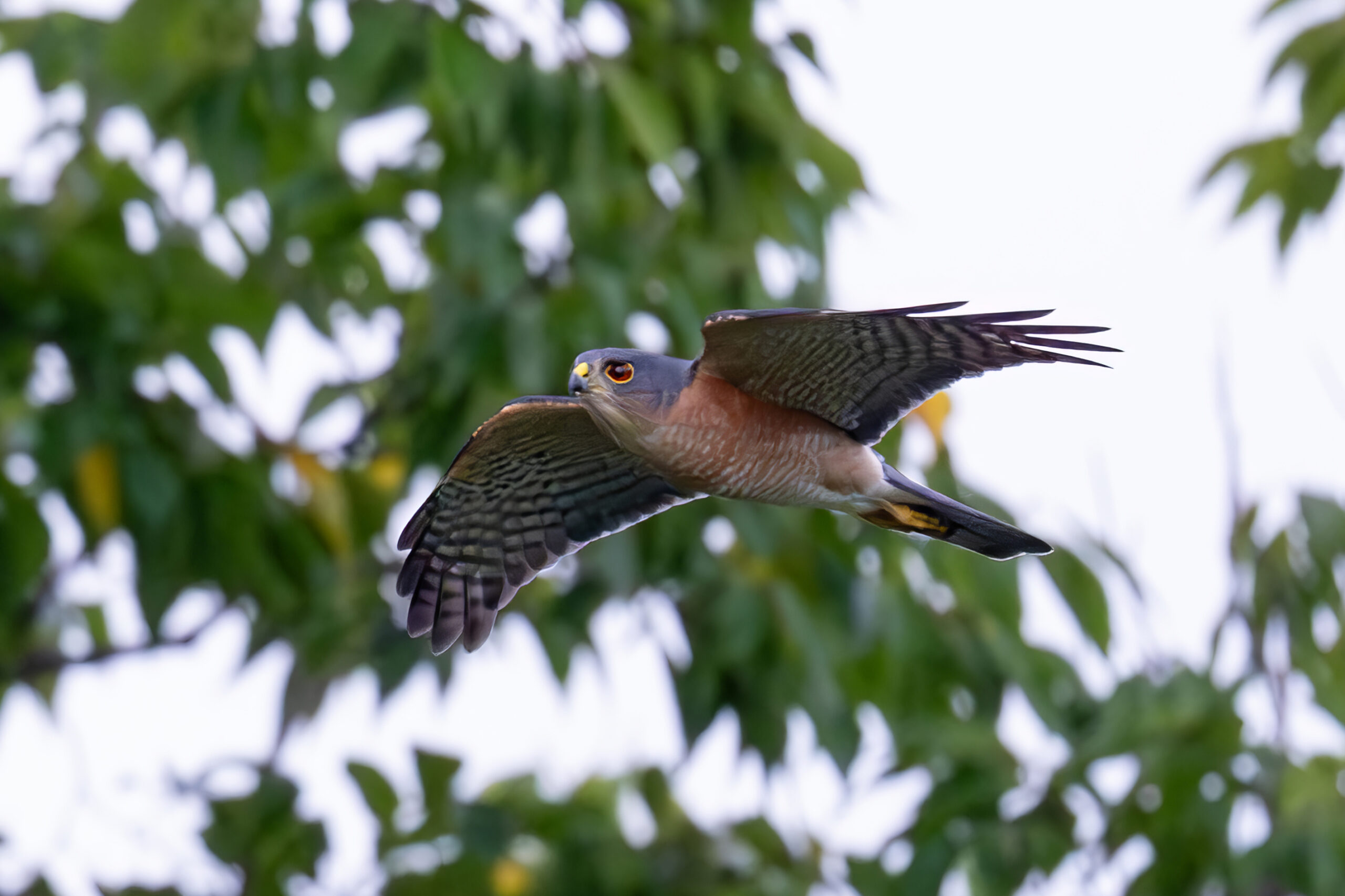 池に降りるとカワセミがお立ち台にいました。その上空ではツミが「鬼ごっこ」をしている最中で、カワセミは上空をしきりに眺め、動けないようでした。下手に動くより、じっとしていたほうが安全なのでしょう。「鬼ごっこ」を観戦していて、参加者にツミの成鳥オスが加わっているのに気づきました。「鬼ごっこ」は幼鳥が渡りながら、狩りの練習をする行動だとみていましたが、よくわからなくなってきました。じつに興味深い行動です。