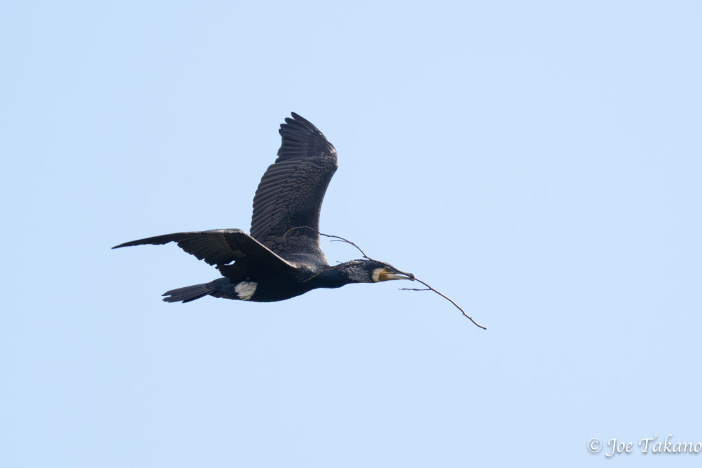 池のほとりの木々もかなり色づいてきました。相変わらずカモは少ないままで池は変わり映えしませんが、カワウが巣材をくわえて飛んでいるのに気づきました。巣材を運んだ先は……潔癖で快適な生活のために生きものをないがしろにする一部の市民が公園管理者に苦情をぶつけ、コロニーを破壊させてカワウを追い出したわけですが、ここからカワウたちの反撃が始まるのでしょうか。成り行きを見守りたいと思います。
