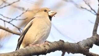 各所のエノキとムクノキでは、ツグミ合戦が繰り広げられていました。在庫が少なくなってきた実をめぐっての争奪戦です。同様にシメ合戦も見られます。今朝は数羽が追いかけ合っていました。