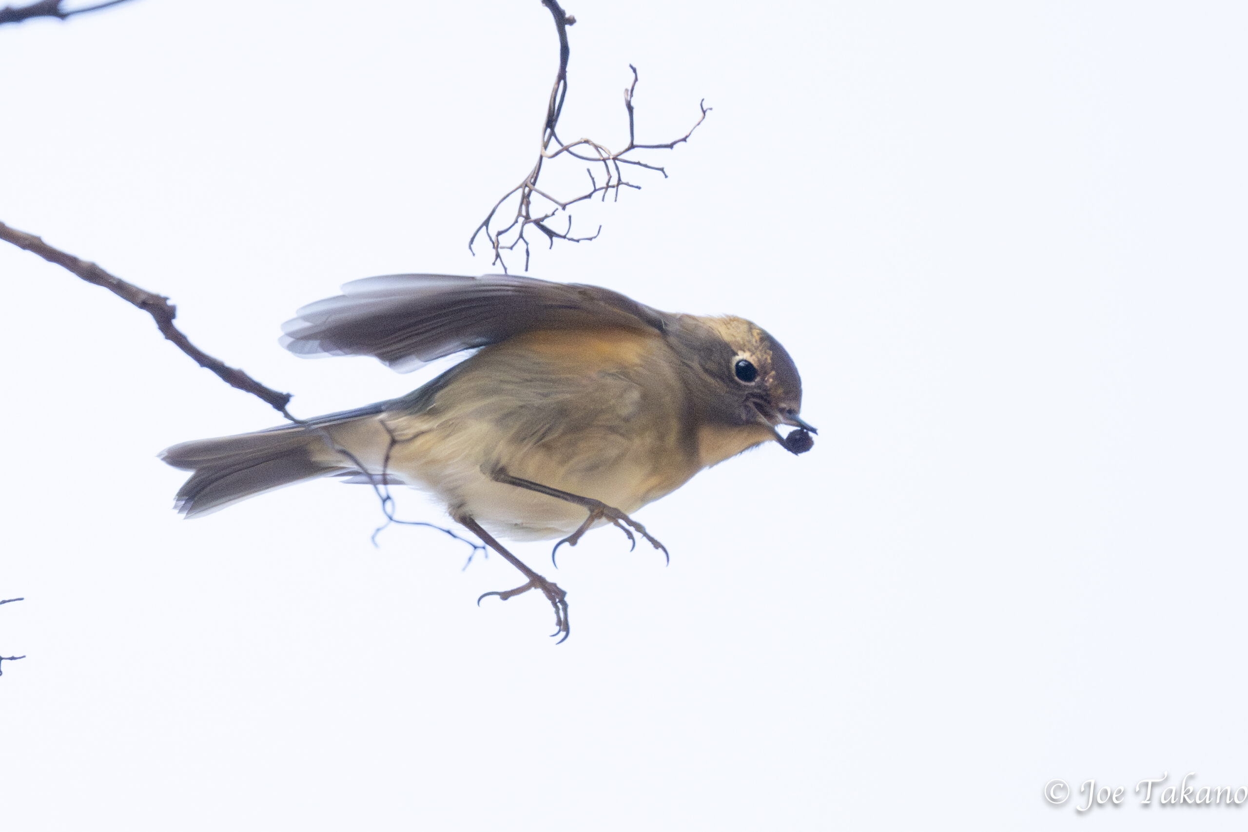 家を出た途端、ヒヨドリがフライングキャッチを見せました。向かいの棟に2羽とまっています。カメラを向けられないし、観ているだけでも訝しがられそうなので進みました。住宅地を歩いていくと、例の民家の前で今度はメジロがフライングキャッチ。通りすがりの御婦人が立ち止まって見ています。「メジロでしたよ」と伝えると、「メジロですか。ありがとうございます」と返してくれました。