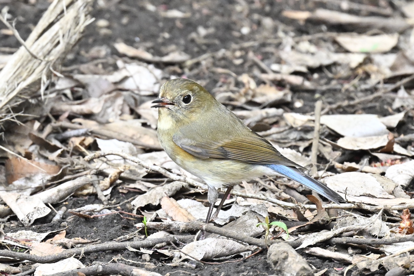 「舞台」にさしかかったとき、足元に飛んできたのは久々のルリ子。着地した直後、目が合うとまた舞台に戻っていきました。久しぶりの出会いは、花道へのお出ましというファンサービスぶりです。ただ、オスの若鳥ではないかという疑惑が現在あります。その後、すぐにもう一度飛んできたと思ったら、ヤマガラでした。ヤマちゃんは、ルリ子と同じような動きで舞台に戻ります。ルリ子とヤマちゃんは元気に動き回り、エナガも登場。舞台は久しぶりににぎわいました。広場に朝から花見をする人はいなくなりましたが、ツグミンは見当たらず。メジロのぐぜり鳴きを聞きながら探索を進めます。