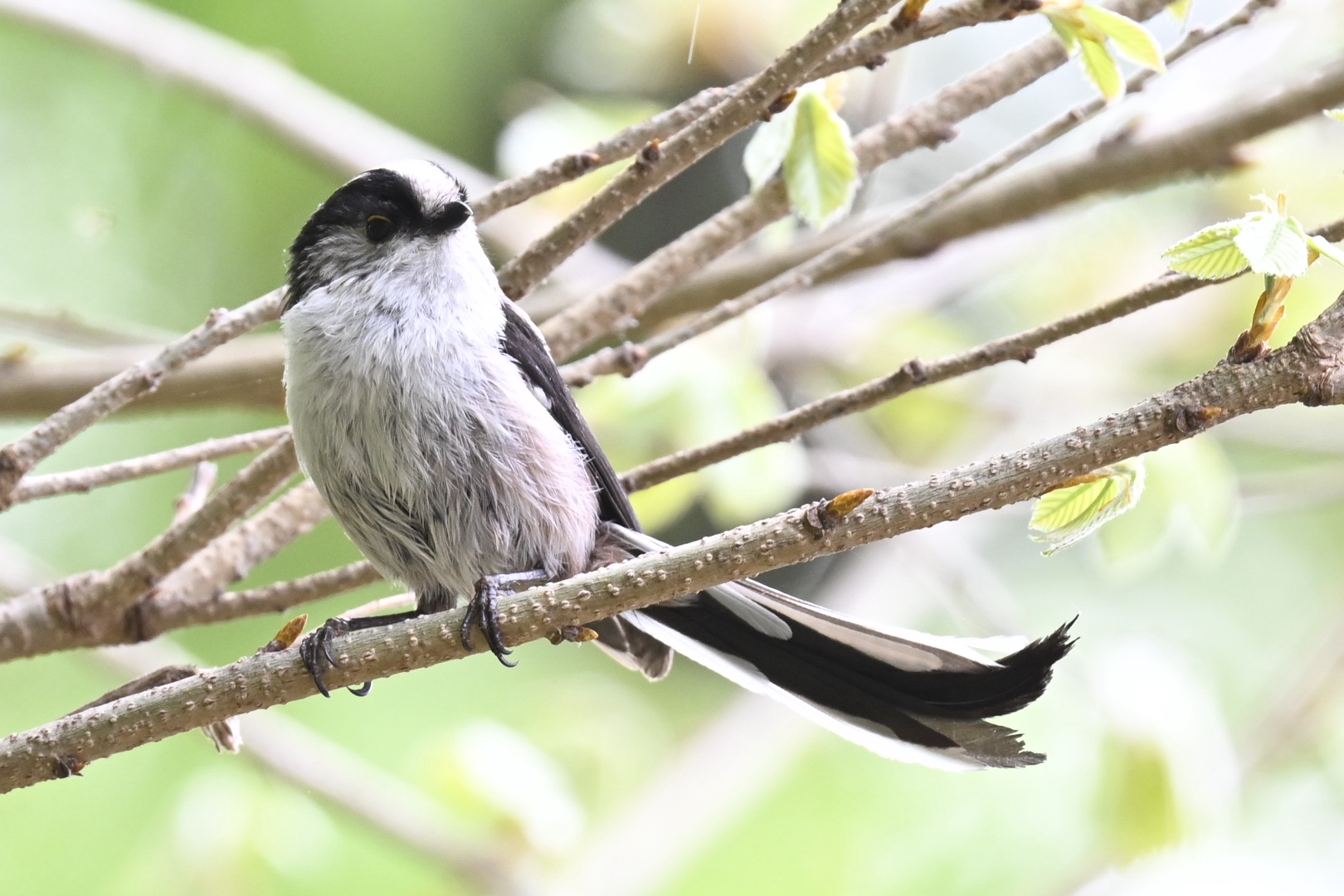 観察もはかどりません。ツバメが飛び、アカハラがぐぜり鳴きします。アトリもジャーとまだいるようですが、風で大きく枝が揺り動かされるので、姿をつかめません。風を言い訳にするのですが、思うように探索できない日でした。すぐに雨が降って、拠点に戻る予定でしたが、意外と降りません。でも鳥が少ないので、あまり観察できませんでした。最近、鳥が減ったうえ距離も遠くなりがちでしたが、帰り道に尾の曲がったエナガに出会いました。もちろん、巣には近づかないようにしています。