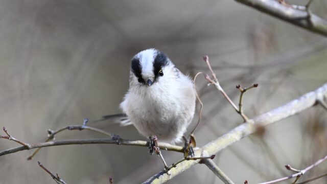 ビワカフェからカキノキに出てきたメジロ2羽が木の...