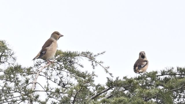 今朝も冷え込みました。住宅地では2羽のカワラヒワが上空を飛んでいき、遠くからモズの高鳴きが聞こえます。